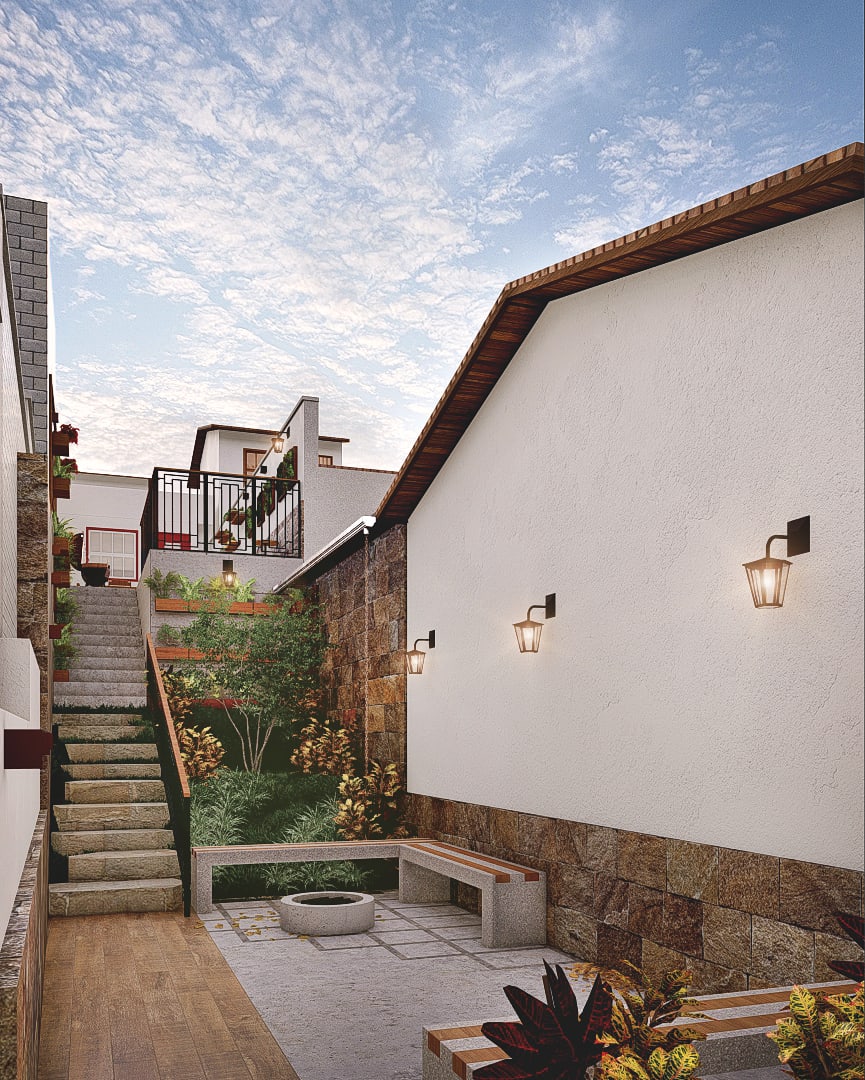 Este projeto surgiu do desejo e necessidade da cliente de transformar o quintal de sua casa em um ambiente agradável e interessante para receber os amigos e servir como área de lazer e contemplação para família.